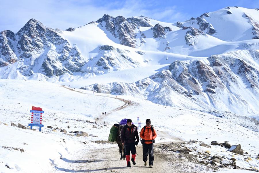 1月1日,登山爱好者在攀登岗什卡雪峰。新华社记者 齐芷玥 摄